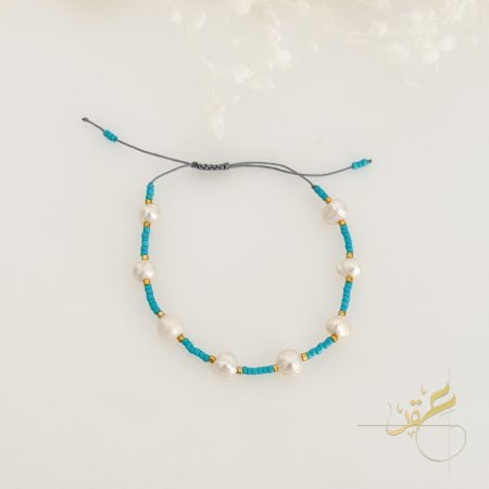 اسوارة مع حجر لون التركواز وحبات لولو طبيعية