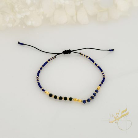 اسوارة مع احجار بألوان الازرق الغامق والذهبي