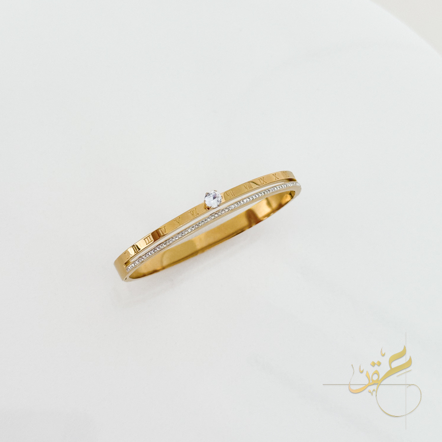اسوارة سلسلة ستانلس مع احجار الزركون وارقام يونانية محفورة