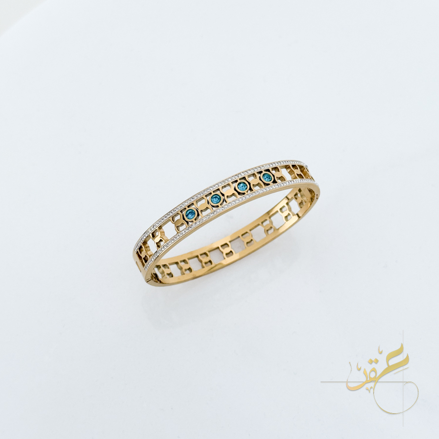 اسوارة سلسلة ستانلس مع احجار باللون الأزرق