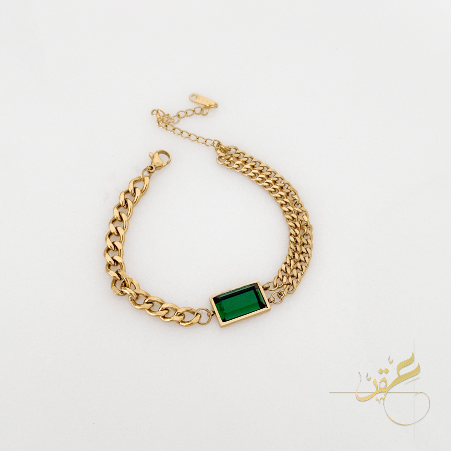 اسوارة سلسلة مزدوجة ستانلس ستيل مع حجر اخضر