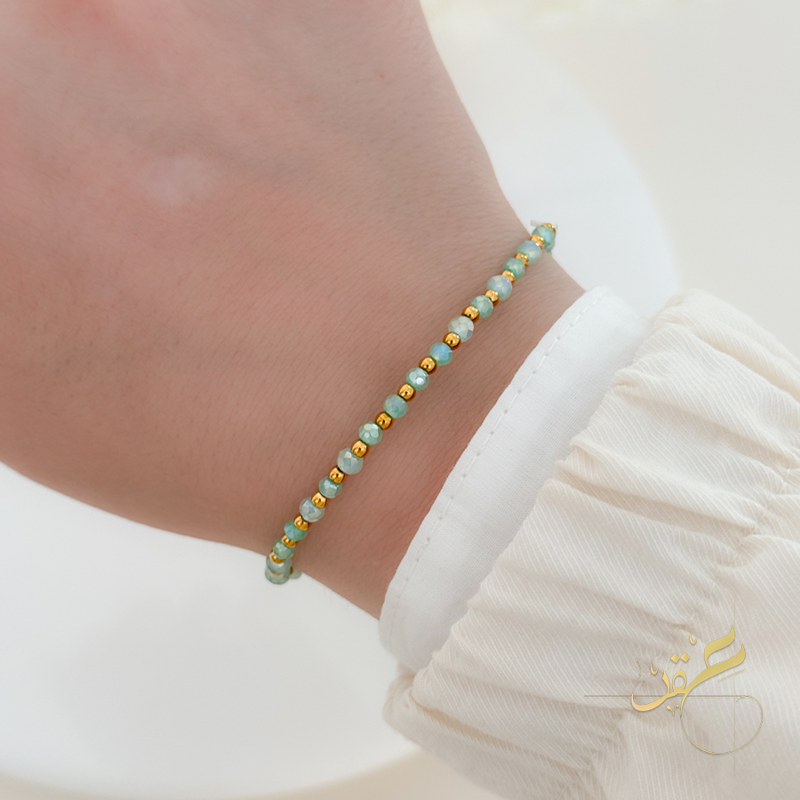 اسوارة مع احجار بتدرجات الأخضر البارد