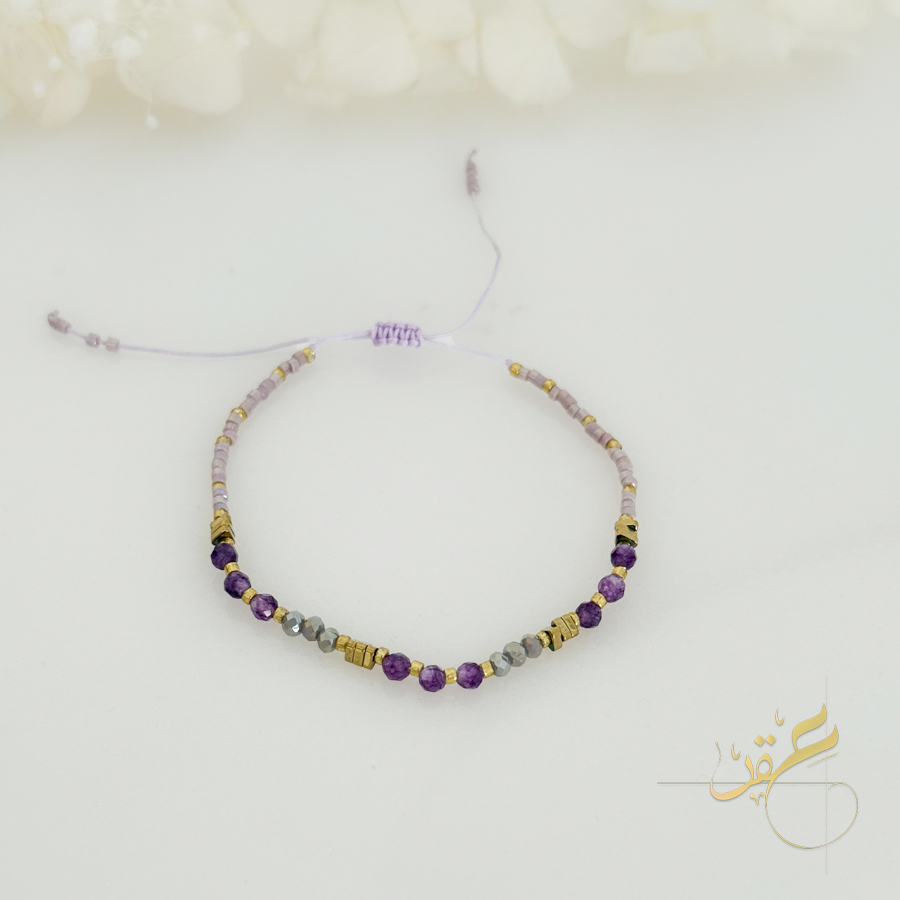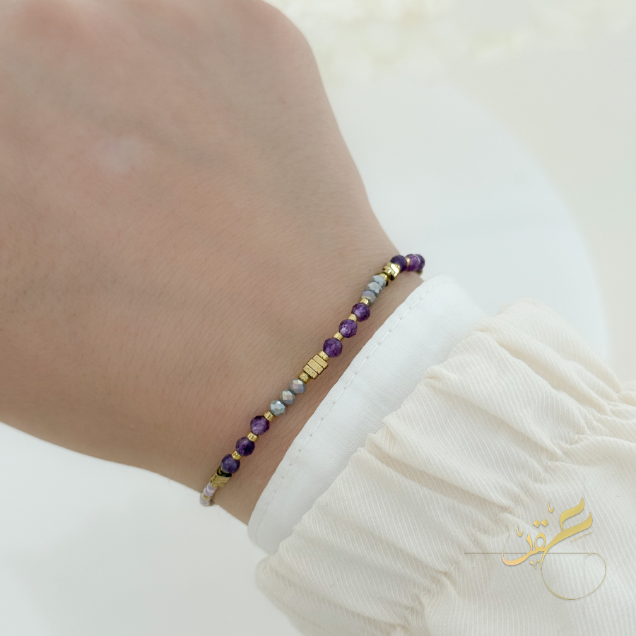 اسوارة مع احجار لون بنفسجي مع ذهبي