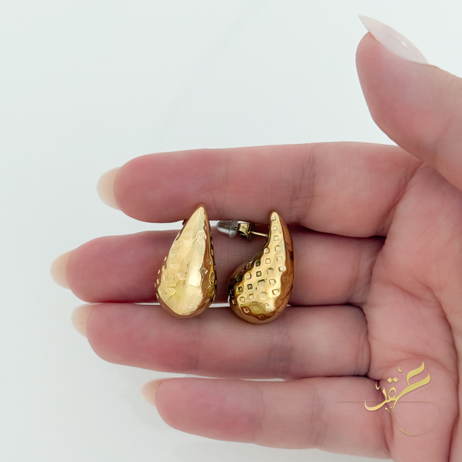 حلق دمعة بنقشة مربعة – ستانلس ستيل