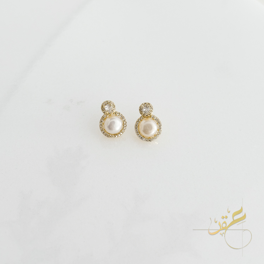 حلق ذهبي مدور مع حبة لولو طبيعية freshwater pearl
