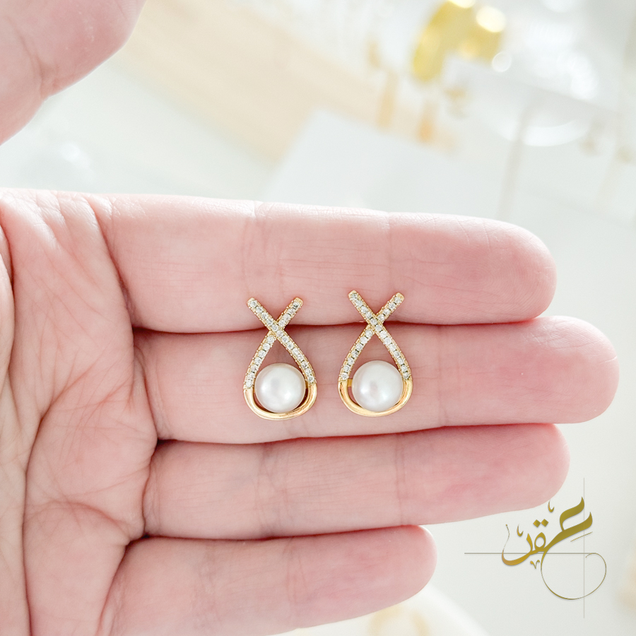 حلق ذهبي مع حبة لولو طبيعية freshwater pearl