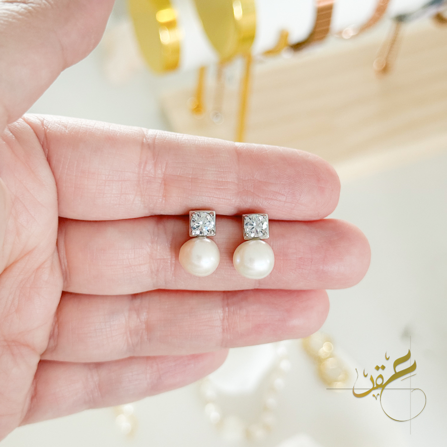 حلق دمعة مع حبات لولو طبيعية freshwater pearl
