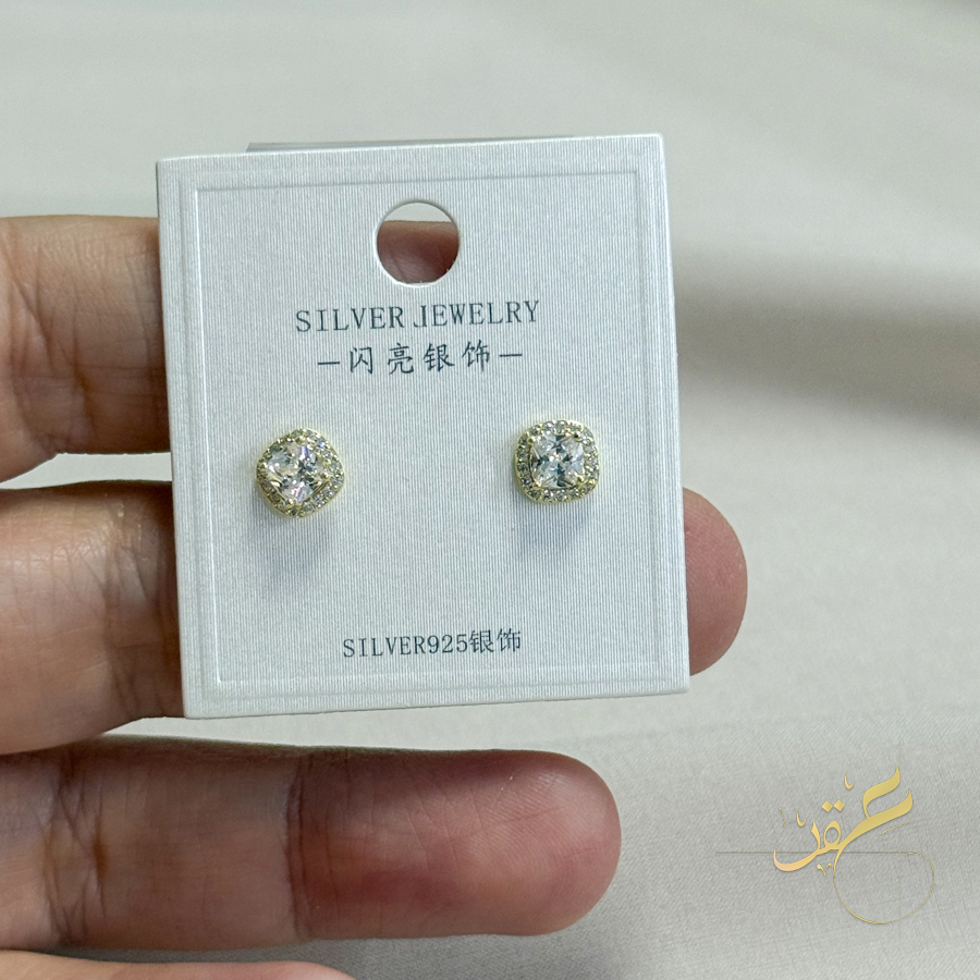 حلق مربع محجر – فضة اصلي s925 مطلي ذهب