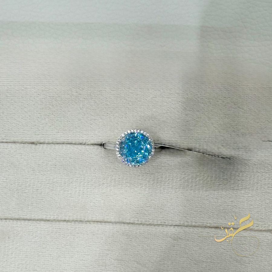 خاتم حجر ازرق مدور – فضة اصلي s925