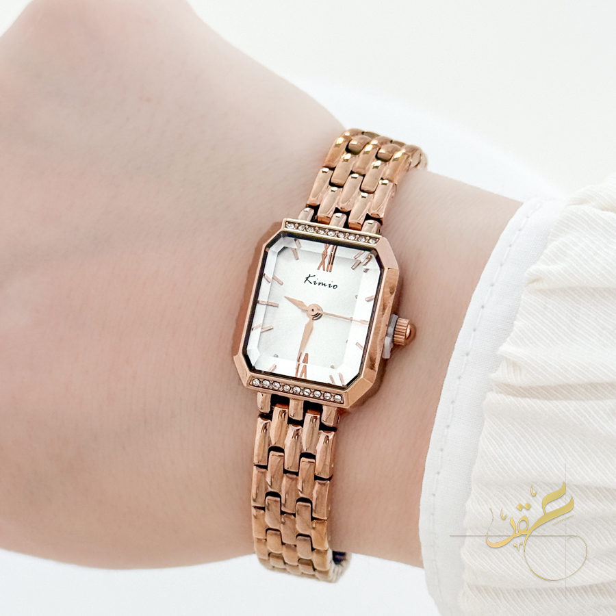 ساعة ستاتية ماركة Kimio مع كاسكيت لون روز جولد