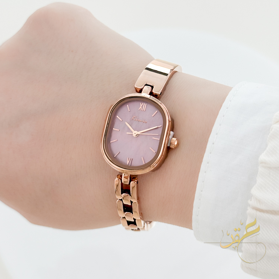 ساعة ستاتية ماركة Kimio مع كاسكيت لون روز جولد ومينا لون زهري