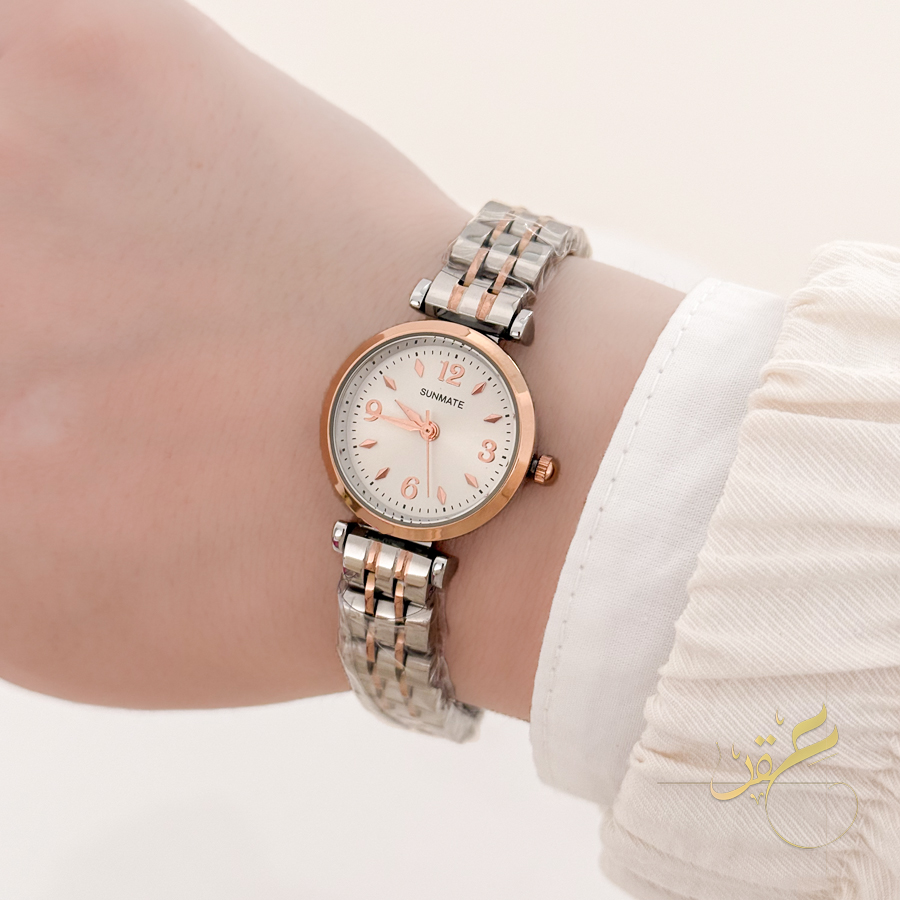 ساعة ستاتية ماركة Sunamte لون فضي مع روز جولد ومينا لون ابيض