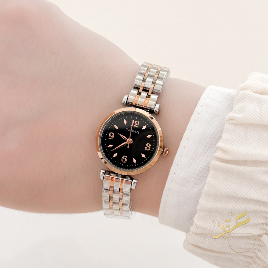 ساعة ستاتية ماركة Sunamte لون فضي مع روز جولد ومينا لون اسود