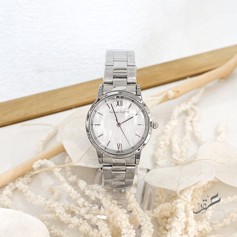 ساعة ستاتية ماركة HANNAH MARTIN كاسكيت فضي مع مينا لؤلؤية