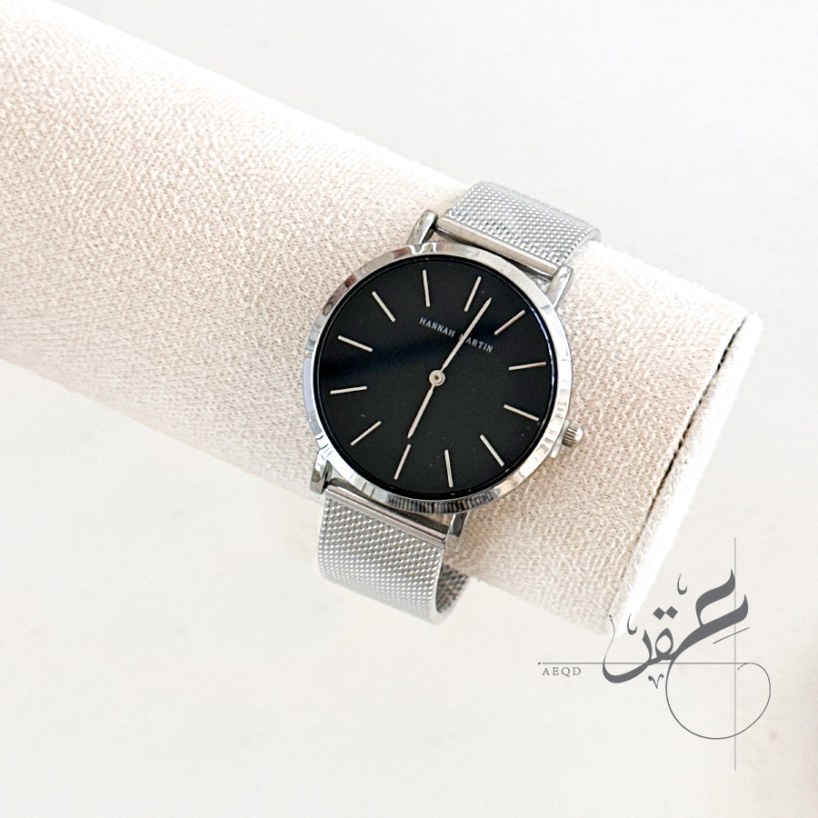 ساعة ستاتية من Hannah Martin مينا اسود واطار فضي
