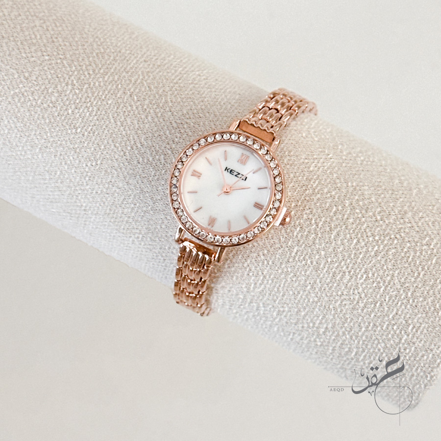 ساعة ستاتية من KEZZI مع كاسكيت لون روز جولد