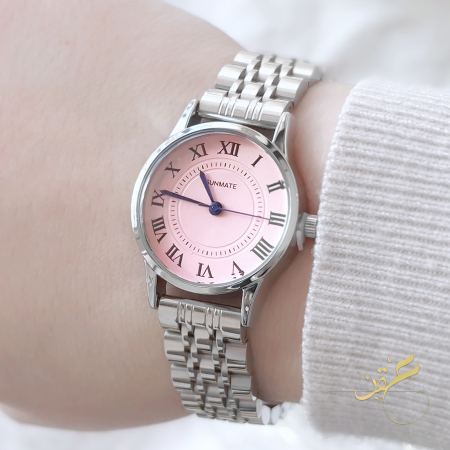 ساعة لون فضي مع مينا زهري و ارقام يونانية – ماركة Sunmate