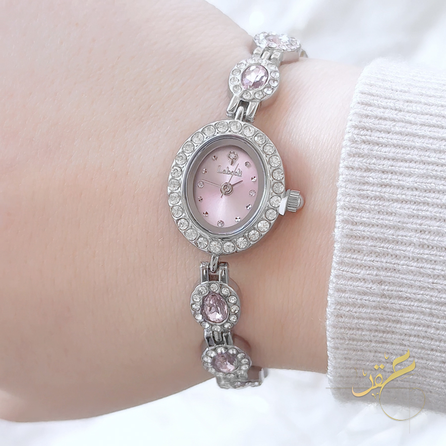 ساعة محجرة لون فضي مع مينا باللون الزهري – ماركة Labaoli