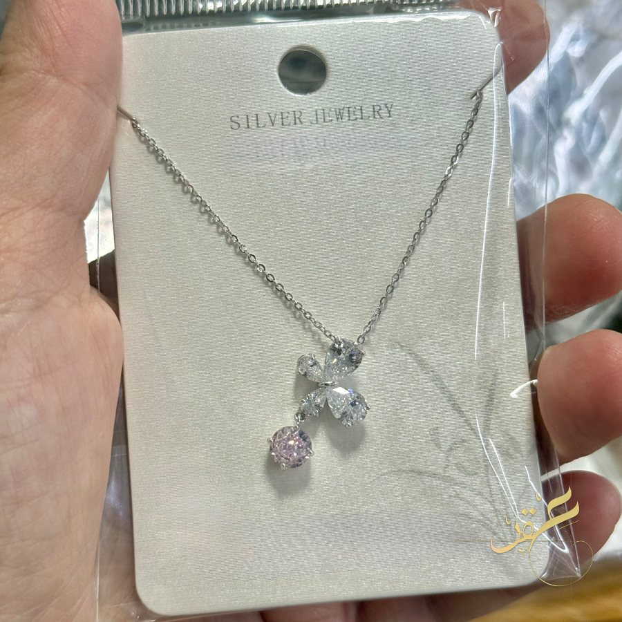 سنسال الفراشة مع حجر زهري – فضة اصلي s925
