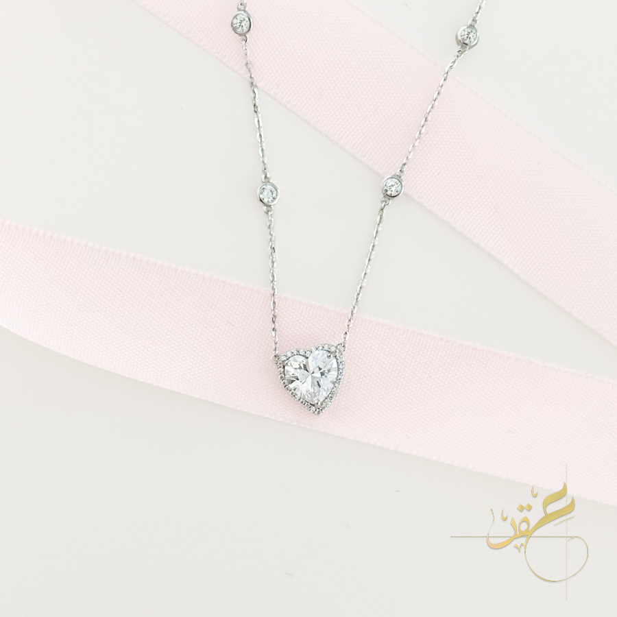 سنسال القلب مع احجار مدورة على الجوانب - فضة اصلي s925 مطلي ذهب