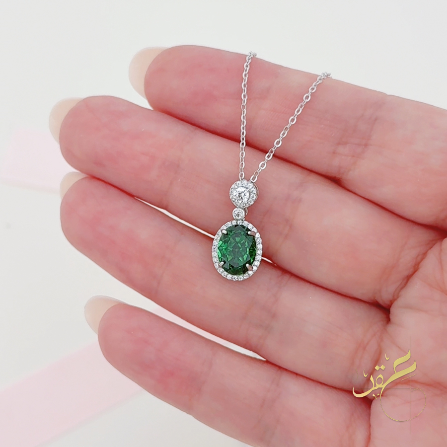 سنسال حجر اخضر بيضاوي – فضة اصلي s925