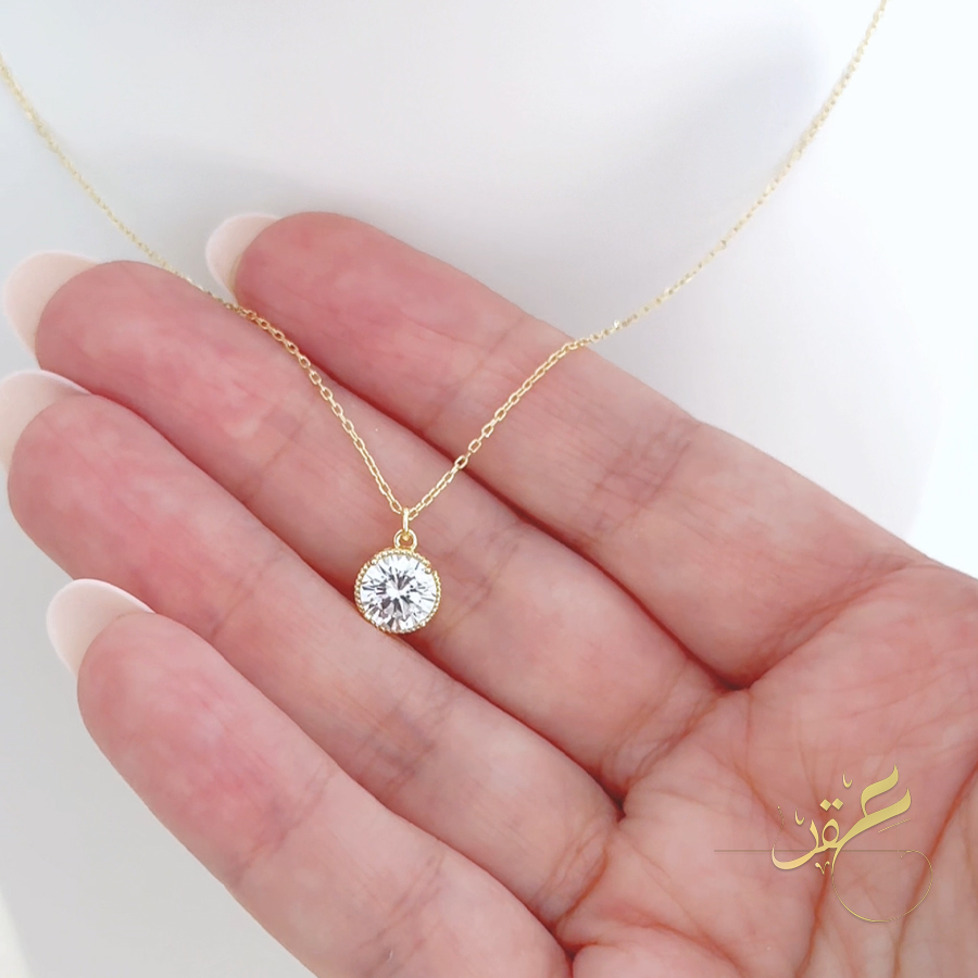 سنسال حجر مدور -فضة اصلي s925 مطلي ذهب