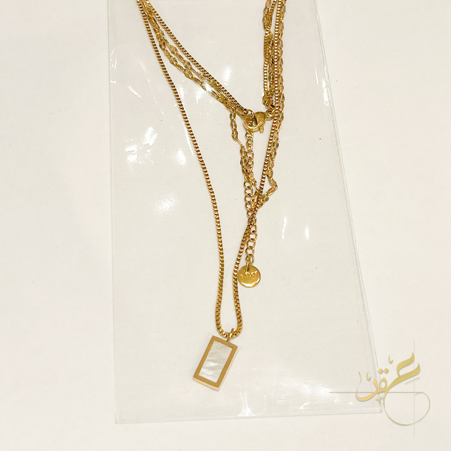اللون: ذهبي طول السلسلة: 45 سم طول القلادة: 1.5 سم ستانلس ستيل يحافظ على لونه