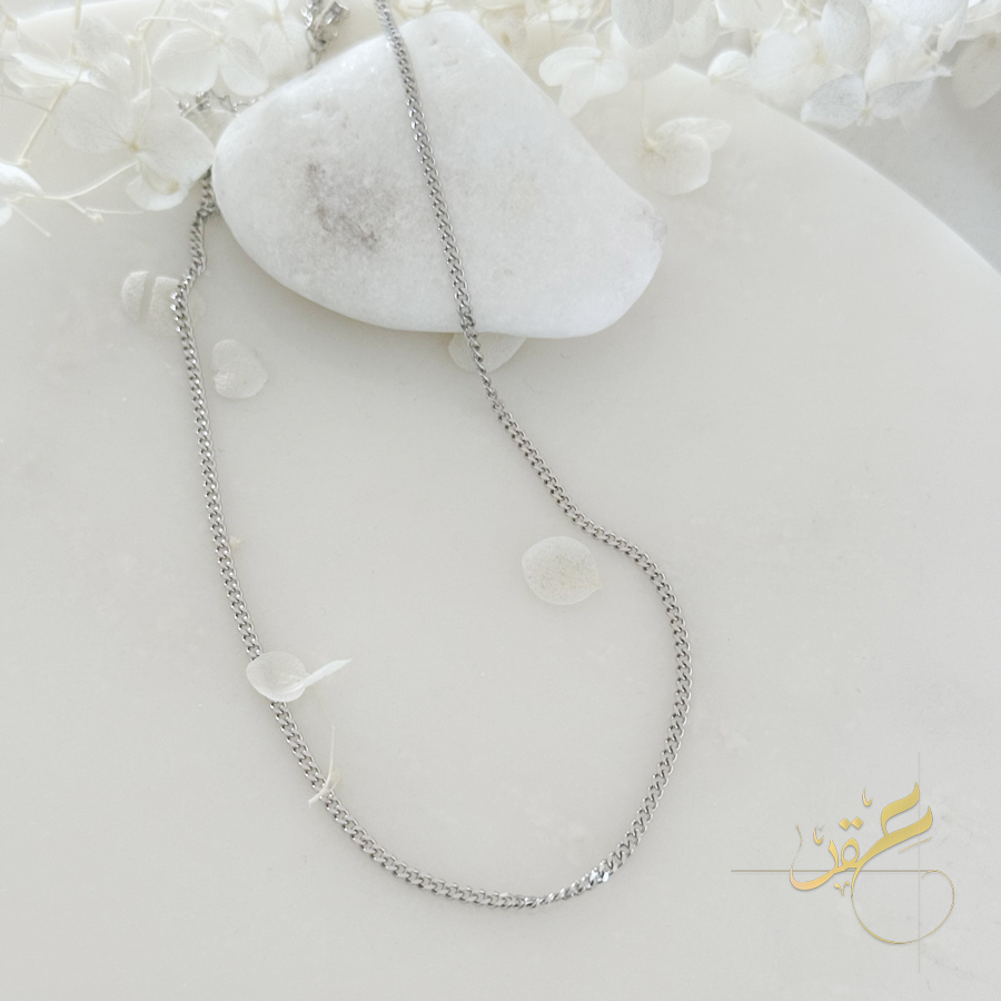 سنسال وحلق فضي مع حجر باللون الازرق البارد