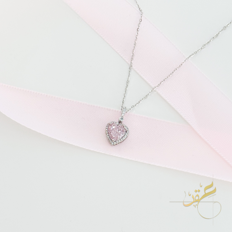 سنسال قلادة القلب باللون الزهري - فضة اصلي s925