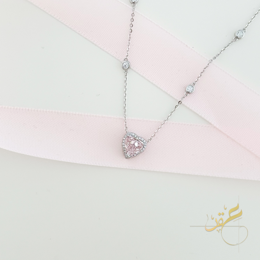 سنسال قلادة قلب زهري - فضة اصلي s925