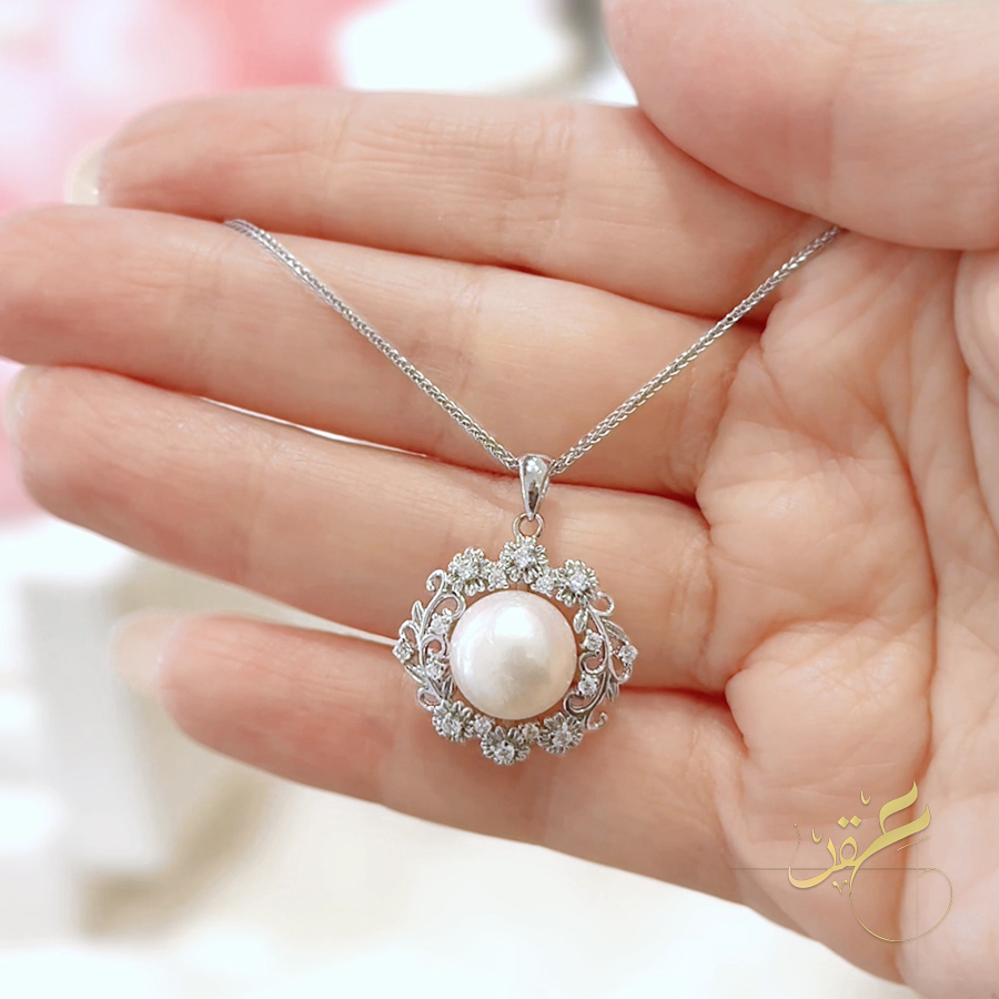 سنسال لولو طبيعي مع اطار بشكل وردات – فضة اصلي s925