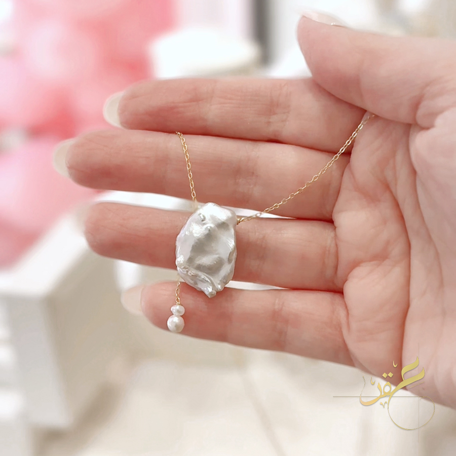 عقد الهلال مع حجر القمر عقد مميز وجميل جداً فضة 925 مختوم