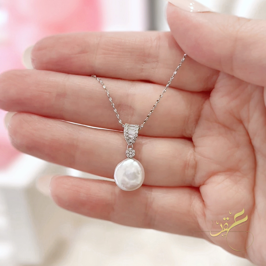 سنسال من الفضة الاصلية s925 مع قلادة حبة لولو طبيعية